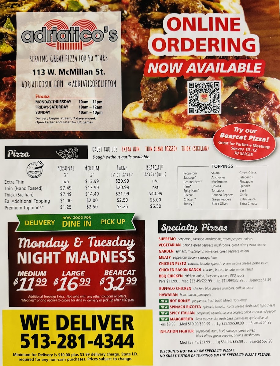 Pair your meal with a local bottled beer like Bud Light or Michelob Ultra to enhance the cozy, college-vibe atmosphere. Customers rave about the friendly staff and impeccable service, making each visit memorable. Whether you crave a hearty, topping-loaded slice or crave a relaxed meal with friends, Adriatico's delivers an authentic, memorable experience that stands out in Cincinnati’s vibrant food scene.